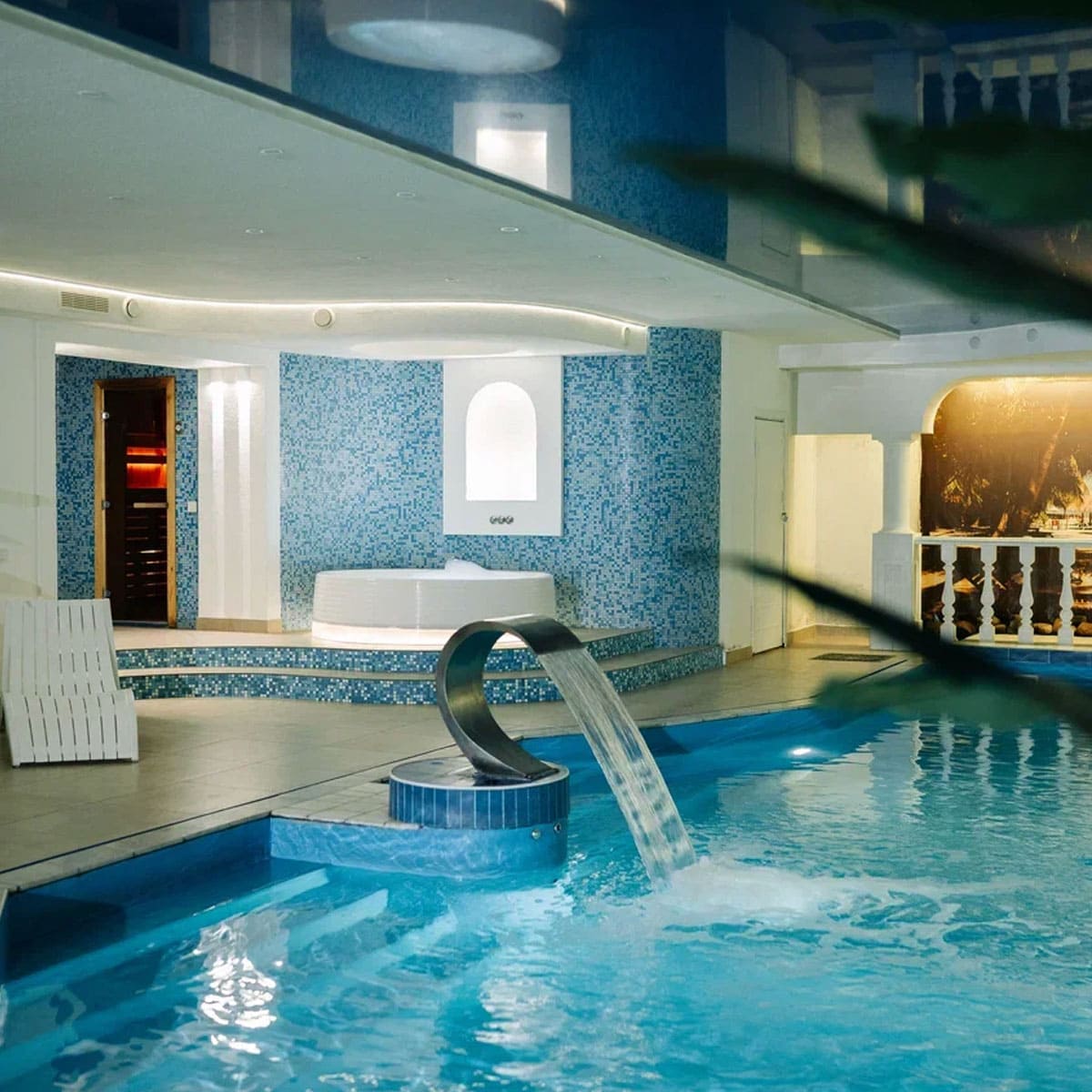 Просторный водный оазис для идеального контраста. Наш большой бассейн подходит для спортивных заплывов, веселых детских игр и бодрящих процедур после парной. Кристально чистая вода зарядит вас энергией.